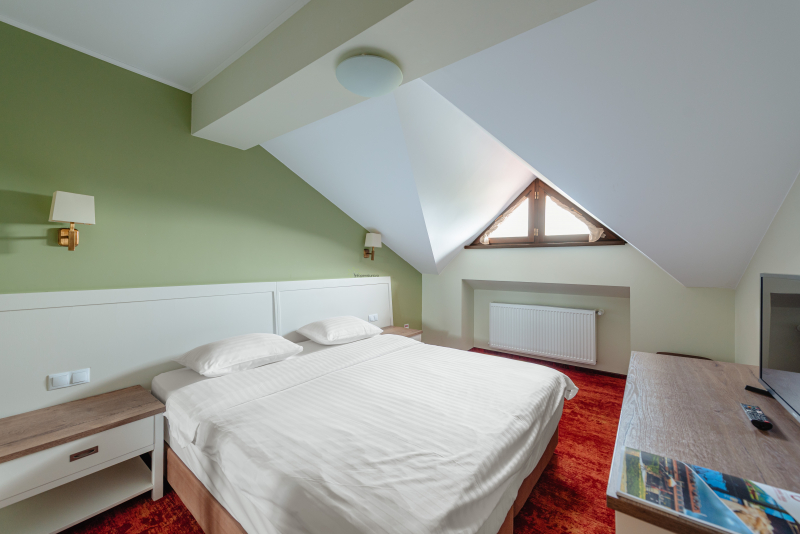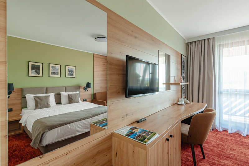 Camera 1 (CAMERA CU BALCON) Grup sanitar propriu: DA Camerele duble se caracterizeaza fie prin dimenssiunea si comfortul acestora fie prin facilitatile pe care le ofera. Lenjeria si prosoapele din bumbac, izolarea fonica de care dispun fac din acestea placerea de a petrece sejurul in confort si liniste.